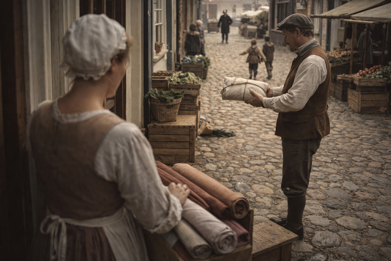 Stalls, shops, and open-air traders formed a layered economy that accommodated both specialized craftspeople and itinerant sellers, so that goods moved from countryside producers to urban consumers through a mix of permanent and temporary arrangements. Prices, credit, and reputation all circulated in public view, and many small firms relied on repeated face-to-face exchanges to sustain trust and predictability. Market days condensed economic activity into predictable pulses, intensifying labor, social exchange, and the flow of information about crops, prices, and politics.